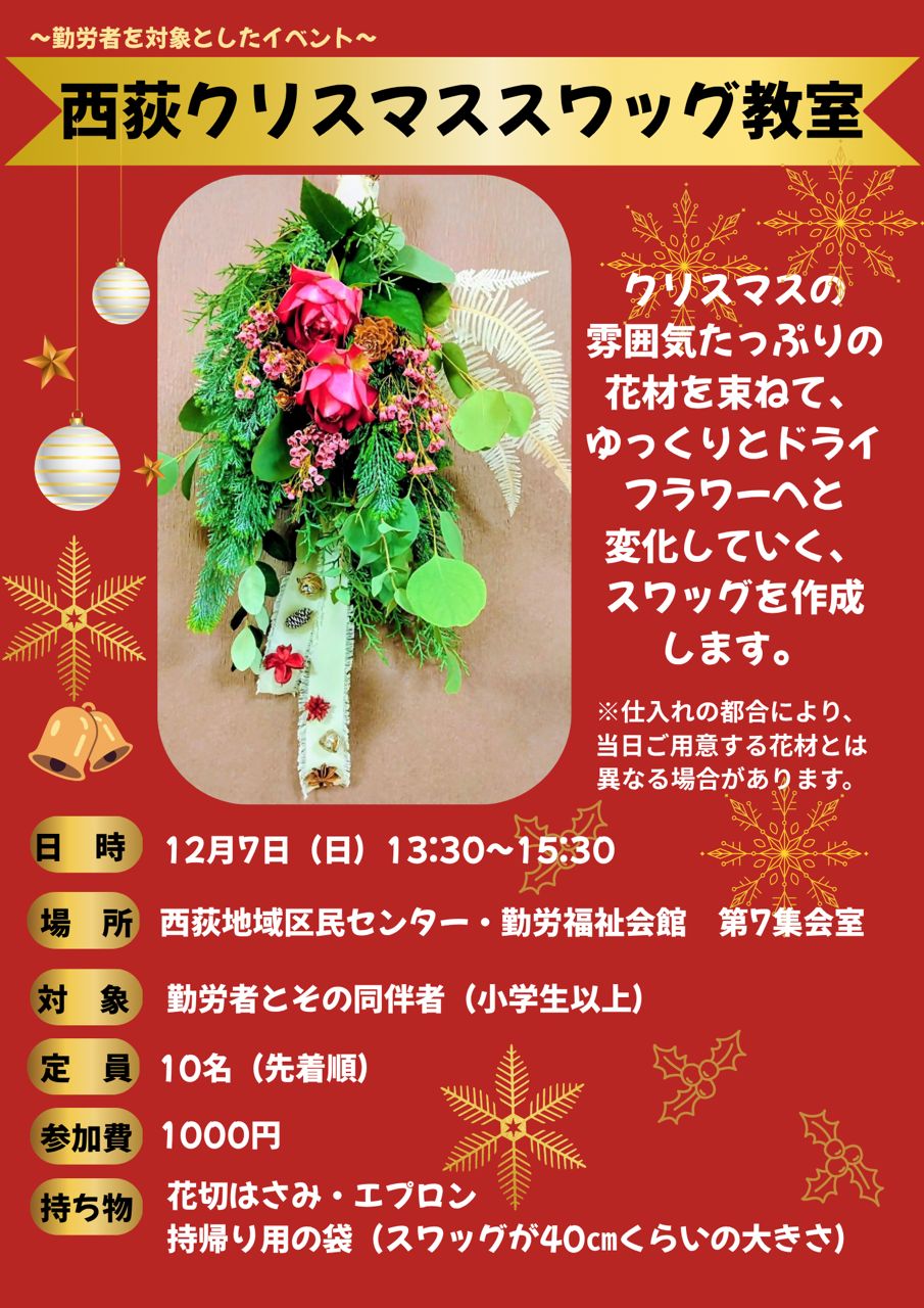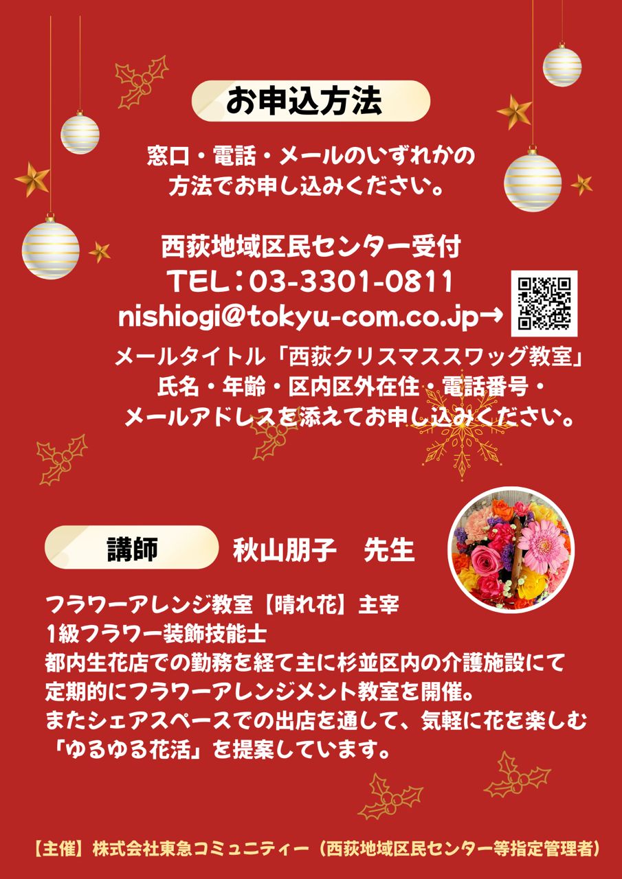 メールタイトル「西荻クリスマススワッグ教室」
